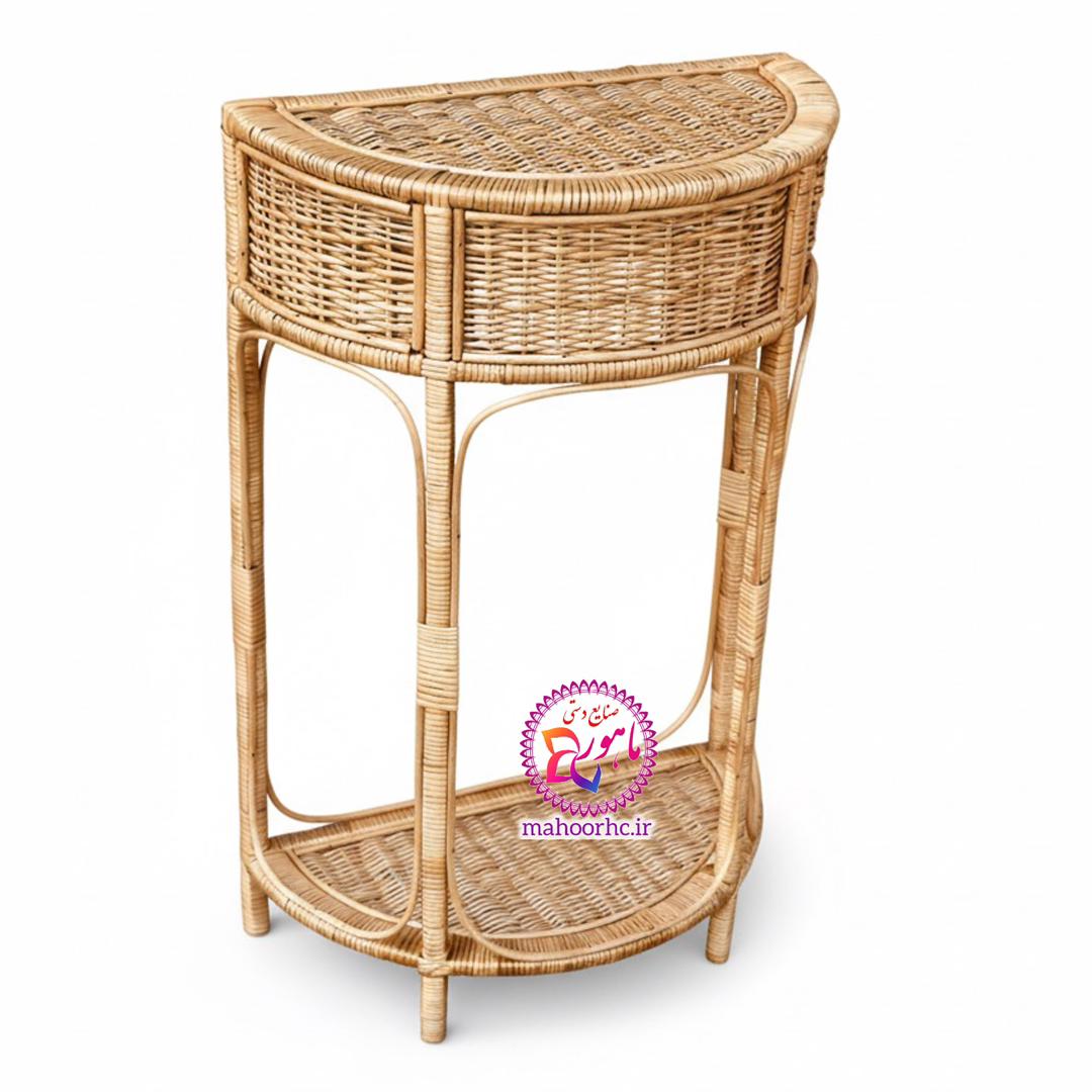 کنسول حصیری دو طبقه ماهور ترکیبی از چوب مروار طبیعی و هنر دست استادکاران ایرانی است. طراحی نیمدایره و بافت منظم این محصول، حس گرما، طبیعت و اصالت را به فضای خانه شما میآورد. اگر به دنبال یک وسیله دکوری کاربردی و خاص هستید، این کنسول انتخابی ایدهآل برای شماست.